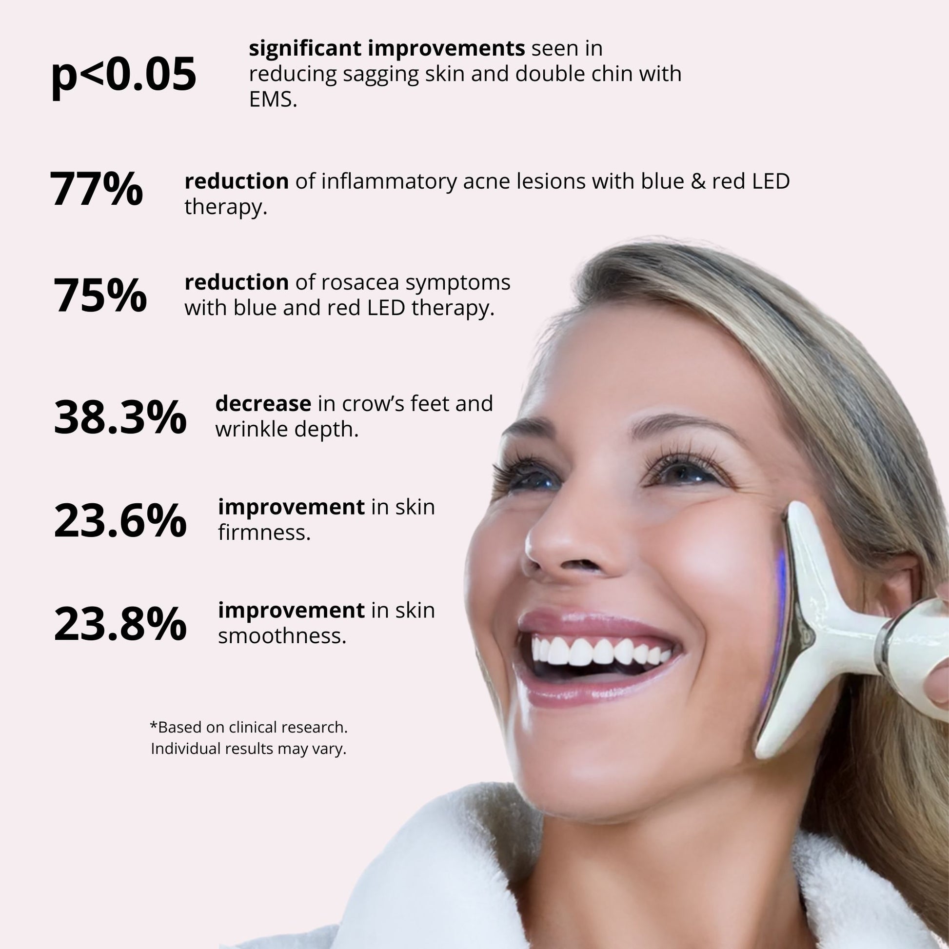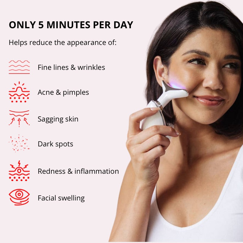 - Red & blue LED light target wrinkles, puffiness, and blemishes