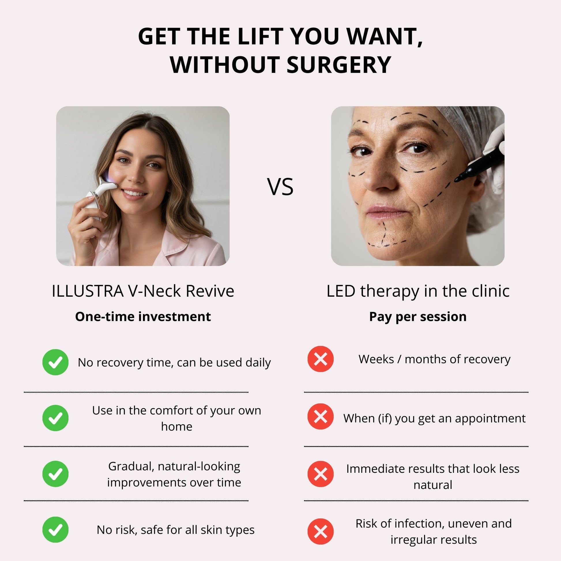 The award-winning V-Neck Revive 1.0, developed by skincare experts, uses advanced LED therapy to lift and firm your jawline in just minutes a day. Trusted by thousands of women, it delivers clinic-grade results at home. Safe, effortless and proven.